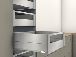 Wyjątkowa prowadnica w kształcie litery L zapewnia doskonałą stabilność nawet przy wysokim obciążeniu. Prowadnica gwarantuje zsynchronizowany, płynny ruch, a wysoka stabilność frontu otwiera nowe możliwości w projektowaniu kuchni, pozwalając bez trudu połączyć wysokie fronty z niskimi bokami. Prowadnice występują w długości 270-600 mm w wersji obciążenia dynamicznego do 40 kg oraz w długościach 450-600 mm dla obciążenia dynamicznego do 70 kg.