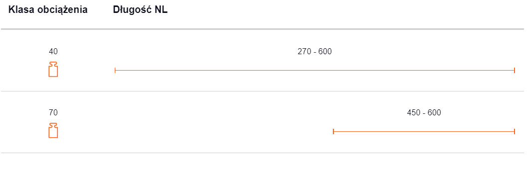Wybierz odpowiednią długość szuflady i dopuszczalne obciążenie z listy. Pamiętaj, że powinna ona być minimum 1 cm mniejsza, niż Twoja szafka.